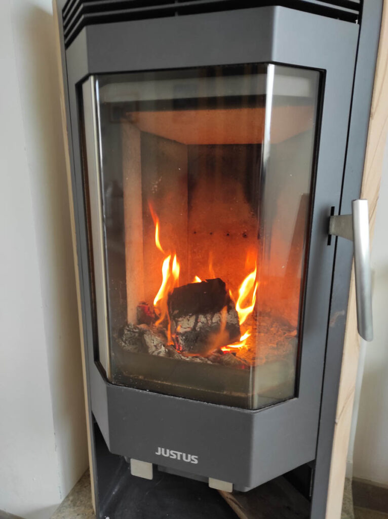 An kühlen Abenden kann der gemütliche Kaminofen für wohlige Wärme sorgen. Ansonsten werden die Räume in der kalten Jahreszeit per Wärmepumpe beheizt.
